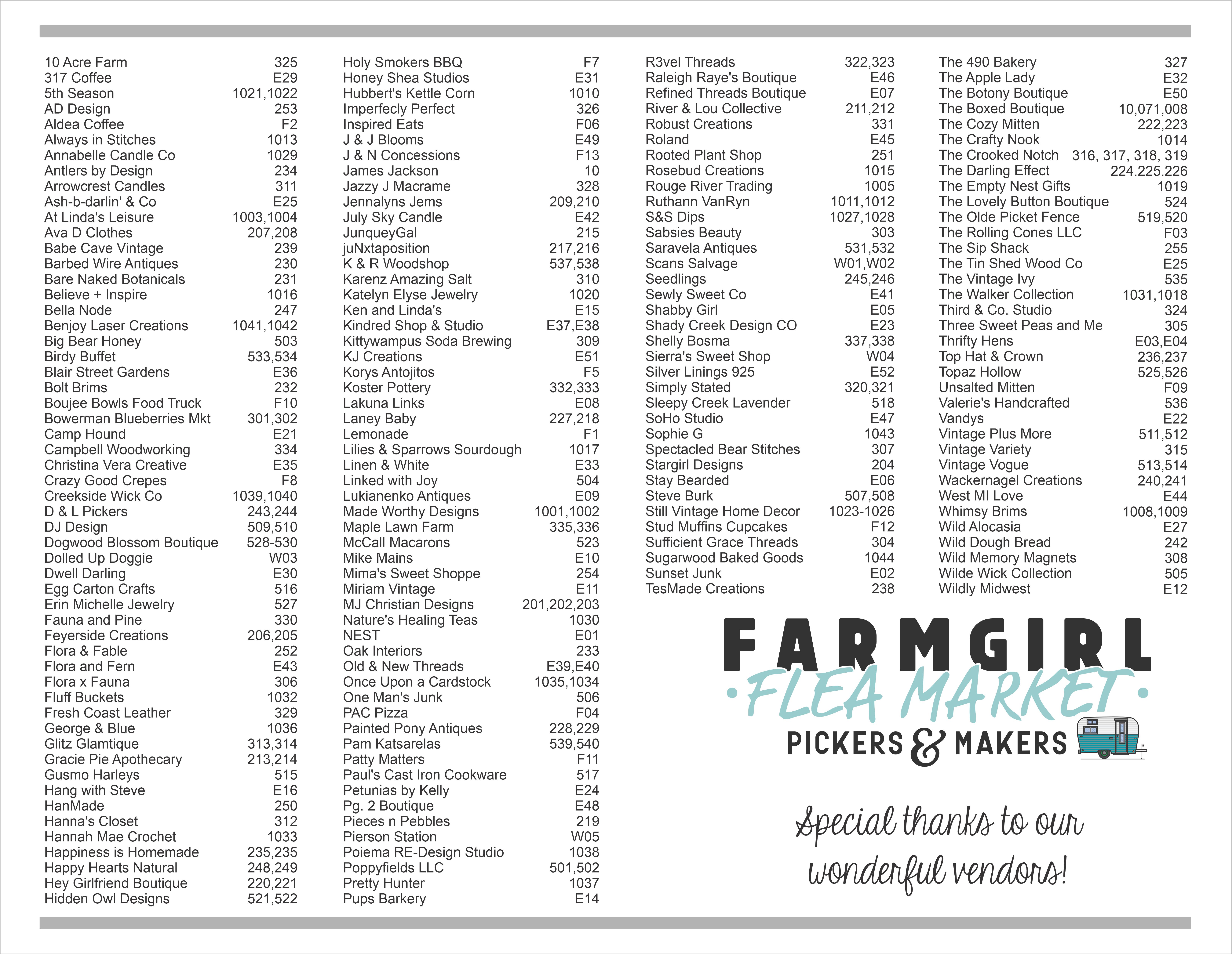 Our next market is just around the corner! Check out the maps below to learn more about booth placement, venue layout, and even which vendors to keep an eye out for.